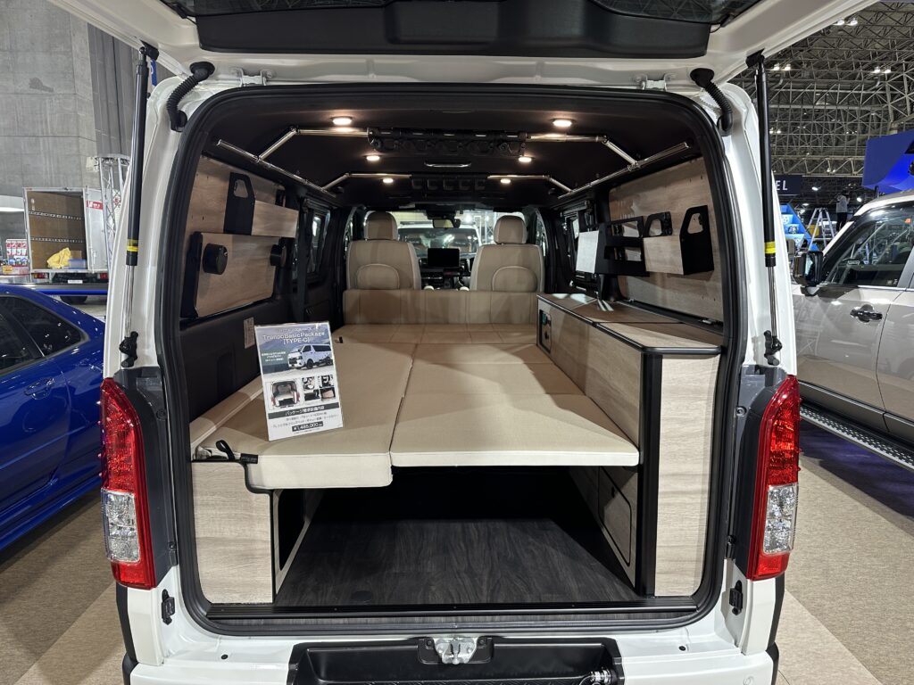 ブースではオートサロンで初お披露目となった、200系ハイエースTranpo BasicPackage Type-Cとランドクルーザー250 ESベッドシステムの2台を展示させていただきました。