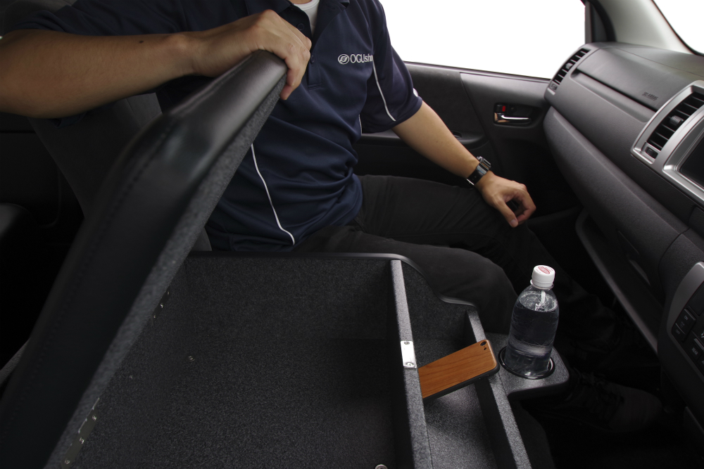 純正のセンターコンソールから取替えることで純正よりも大容量の荷物が収納できるようになります。アームレスト・ドリンクホルダー・収納ボックスと長距離のドライブ時に役立つ装備を備えているので、より快適な移動時間を過ごしていただけます。