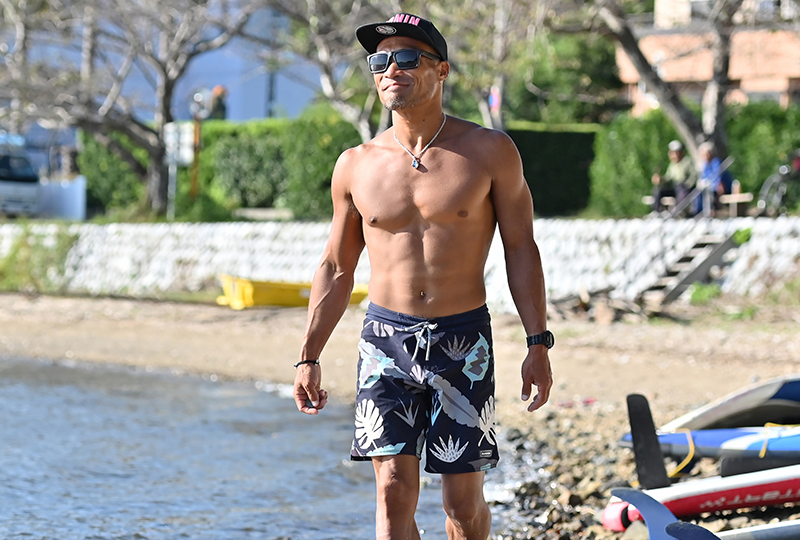 「FOREST PARK磐田」は仲間たちと森を切り開き、整地してスポーツ人工芝を敷き詰めた、手作りのドッグアジリティの練習場です。ステップやシーソー、ハードル、トンネルなども規定の物を揃えて、海外で開催される世界大会の会場に近い環境でトレーニングできます。競技では犬と一緒に並走しても、遠くで指示を出してもOKなのですが、私は愛犬のルーカスと一緒に走るスタイル。元長距離走の選手だったのでスタミナには自信がありますが、瞬発力も必要ですし、大きな声で指示を出しながら走るのでかなりの運動量です。