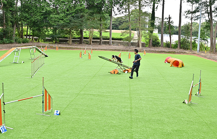 ドッグアジリティとは、犬に指示を出しながらコース上に置かれた障害物を規定に沿ってクリアし、