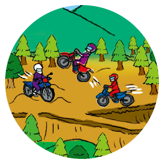 起伏のある未舗装コースを駆け回るハードなモータースポーツですが、オン・オフ限らずバイクのコントロールを体得できます。
