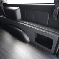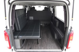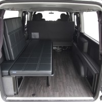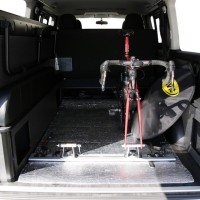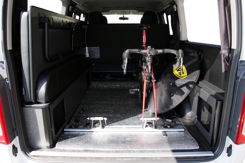 今回施工させて頂いた車輌は、ロードバイクを載せて目的地へ早めに向かい現地に付いたら仮眠をしてから、ロードバイクを楽しむ!という使い方が希望でしたので「SHシングルフリップベッド」を取付けていただきました。また、自転車を載せた際や車中泊する時に必要な商品も施工しました。