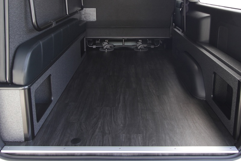 純正の床に採用されたカーペット、デコボコした床をフラットに仕上げているため自転車の積載が安定して行えます。床がフラットになっているため車内の掃除も簡単です。