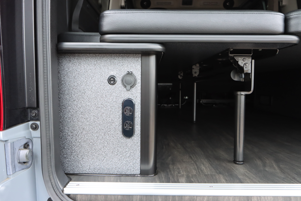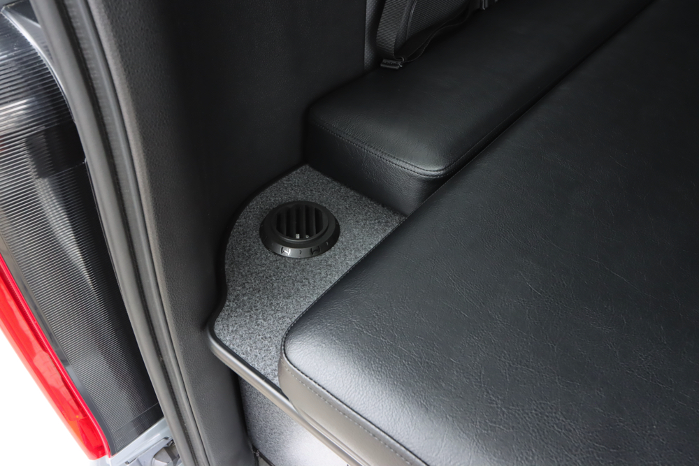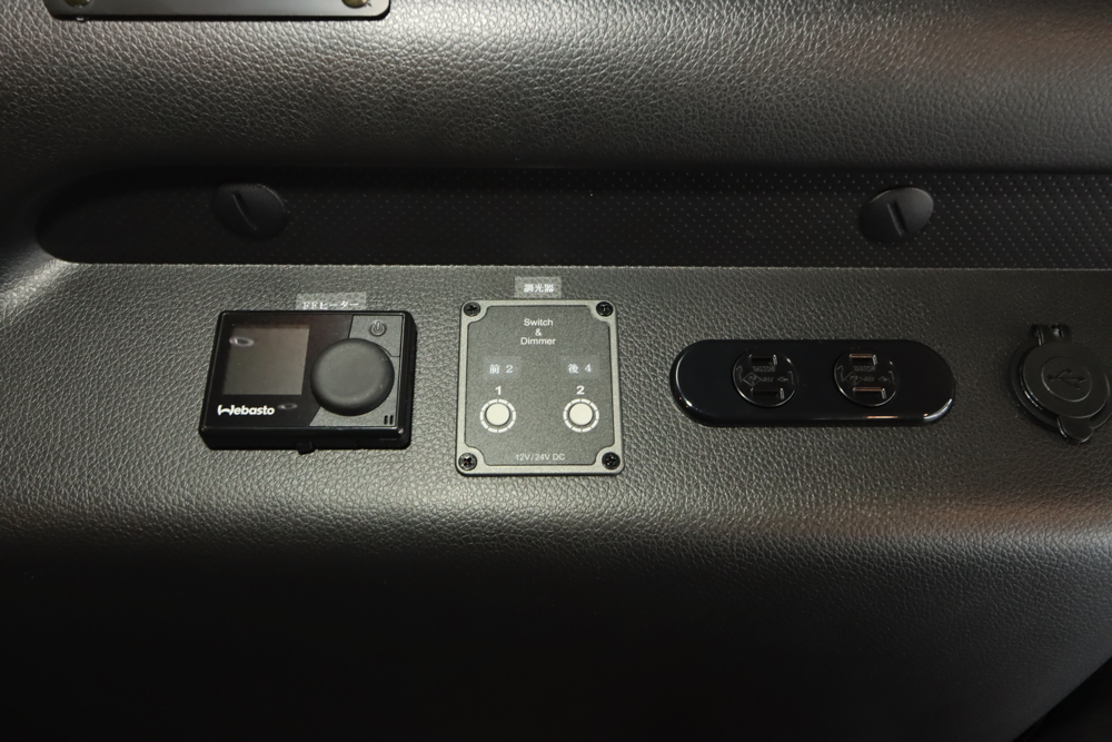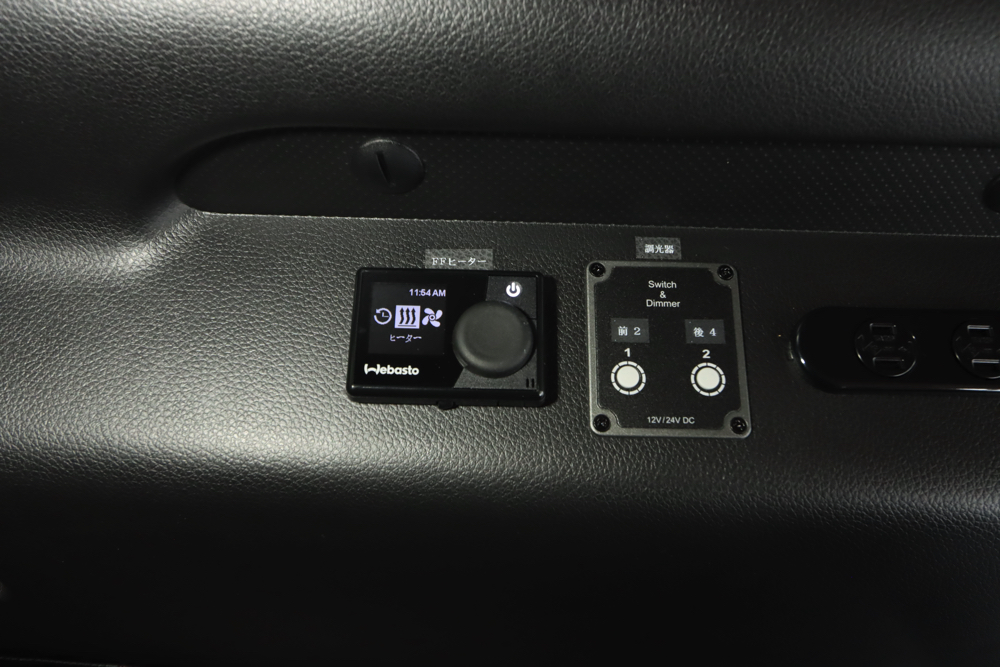 助手席側のベッドBOXにはFFヒーターも搭載。冷え込む時期でもこの1台があれば車内を十分に温めてくれるため、毛布などをたくさんもちこんだり、車内で着込む必要はありません。風量や温度の調節機能付きです。
