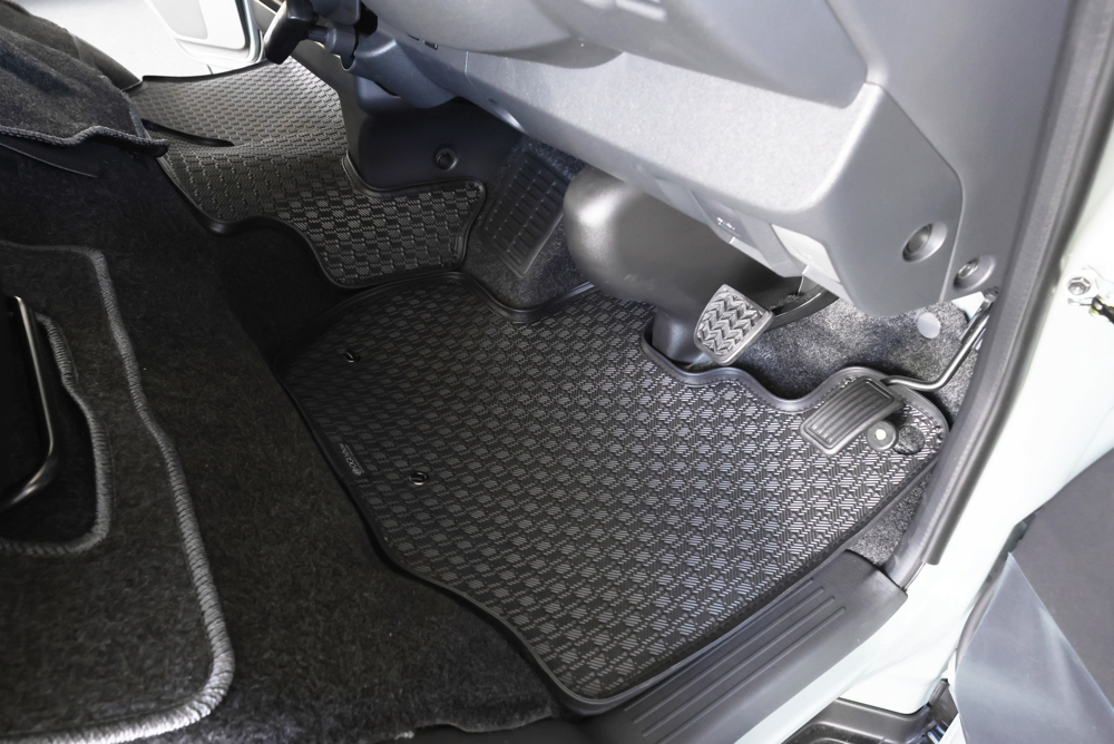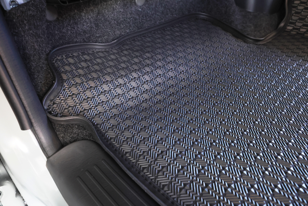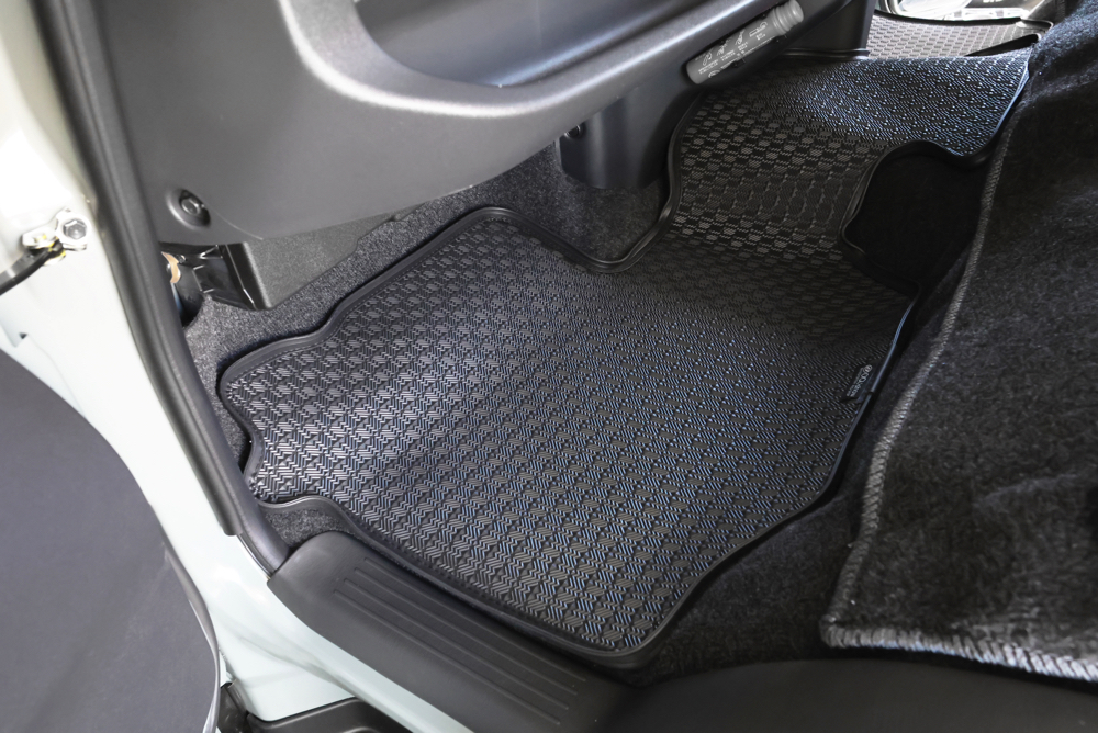 フロントシートとセカンドシートの足元にはESフロアマットEdgeを設置。フロアの保護効果はもちろん、マットの縁部分が15mm立ち上げた縁高モールで設計されているため、濡れたり汚れた足のまま乗車しても泥や水が飛散しにくく、汚れてしまっても簡単に洗い流すことができるアウトドアにぴったりなフロアマットです。