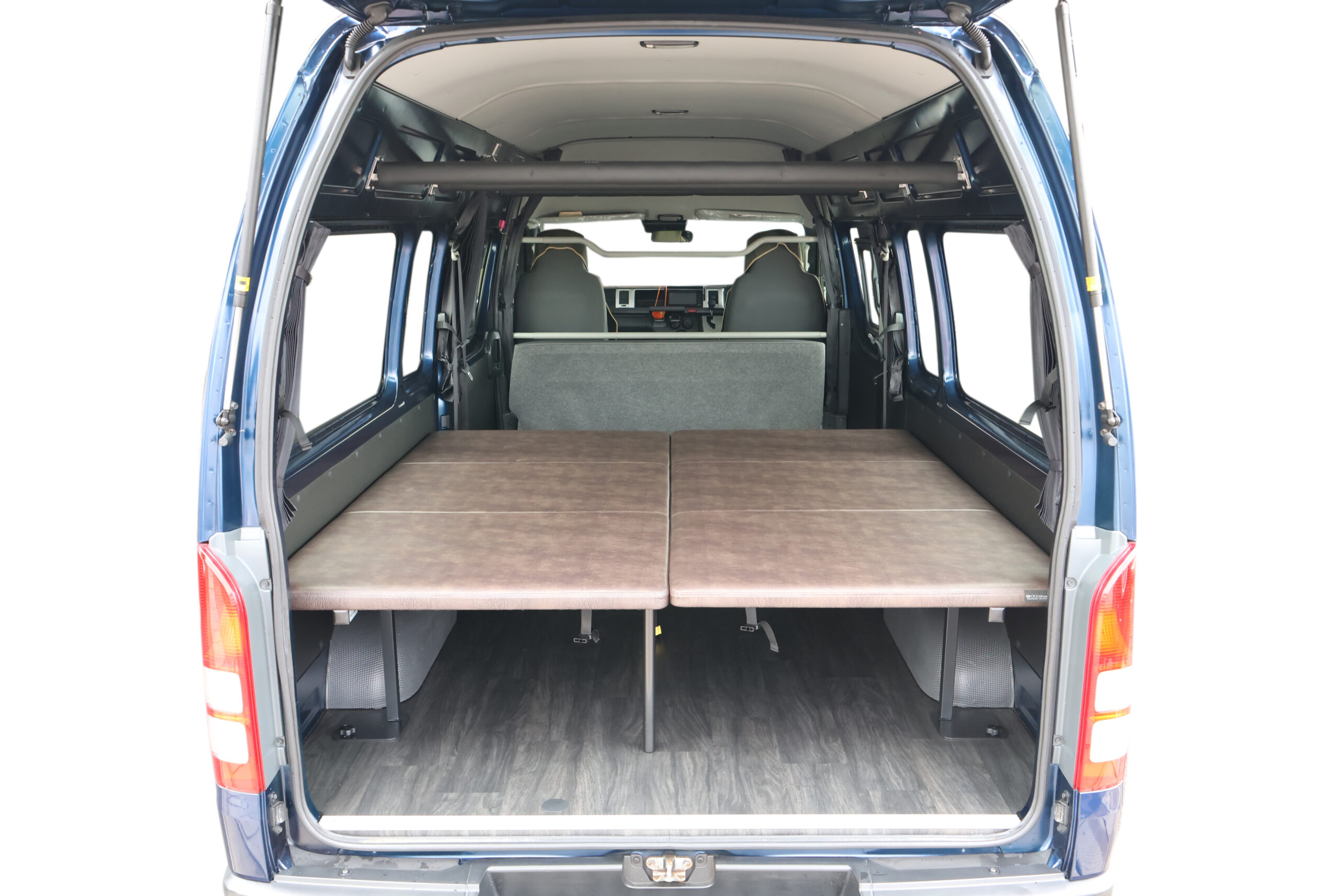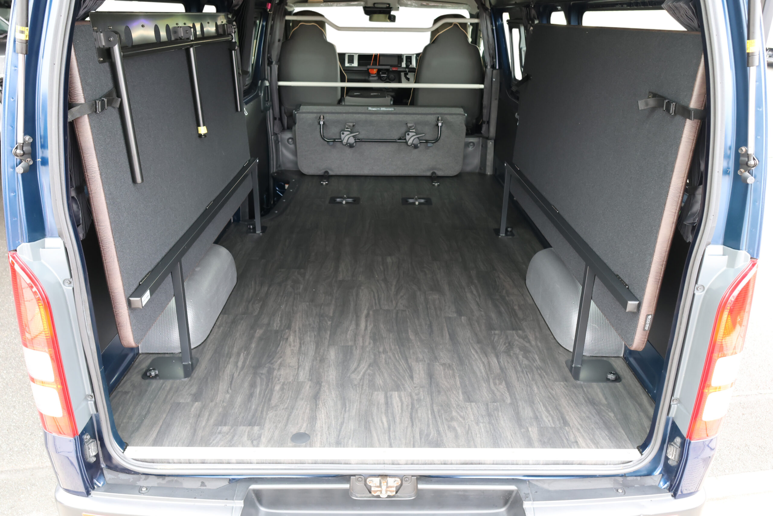 サーフショップを経営されているオーナー様。普段200系ハイエーススーパーロングDXを乗られていて、今回サーフボードを積み込みながら車中泊を行いたいとご依頼を受け内装をリフォームさせていただきました!ボードラックはDX用にオーダーで製作し、ロングタイプのサーブボードも積載が可能。ベッドもオーナー様の希望で、オーダーカラーで製作させていただきました。