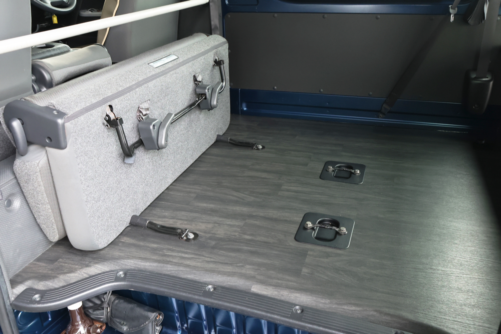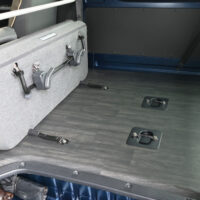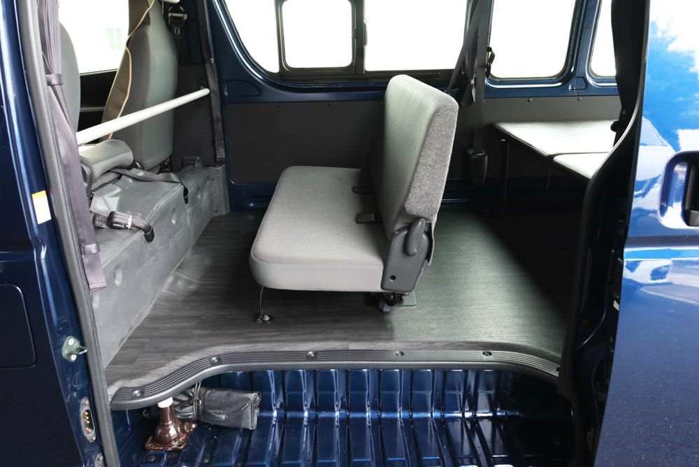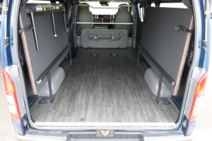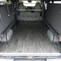 荷室はまず凸凹が目立つDXフロアから、SH床貼りを行い住宅のようなフロアへリフォーム。濡れたままや砂がついたままのサーフボードやウェアなどを積載して、フロアが汚れてしまっても簡単にお手入れが可能。壁と床の間にはシーリング加工をしているので、隙間に汚れや水が入り込んでしまう心配はありません。