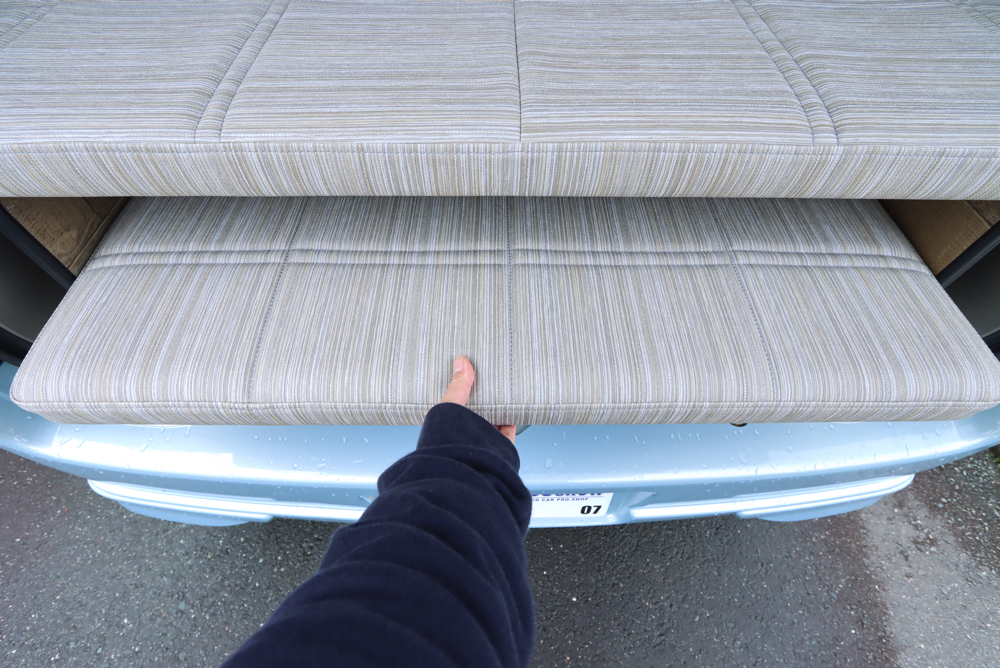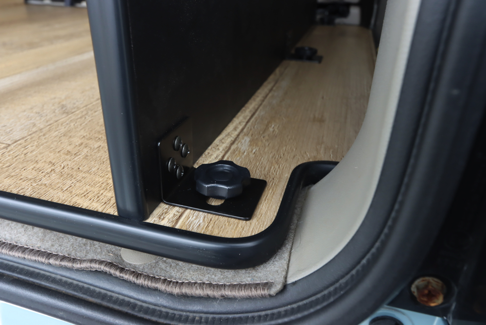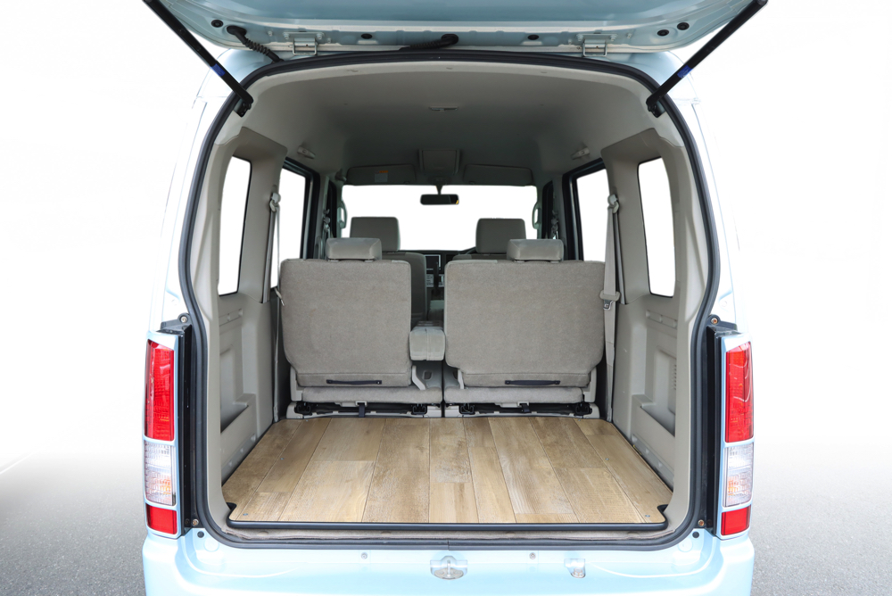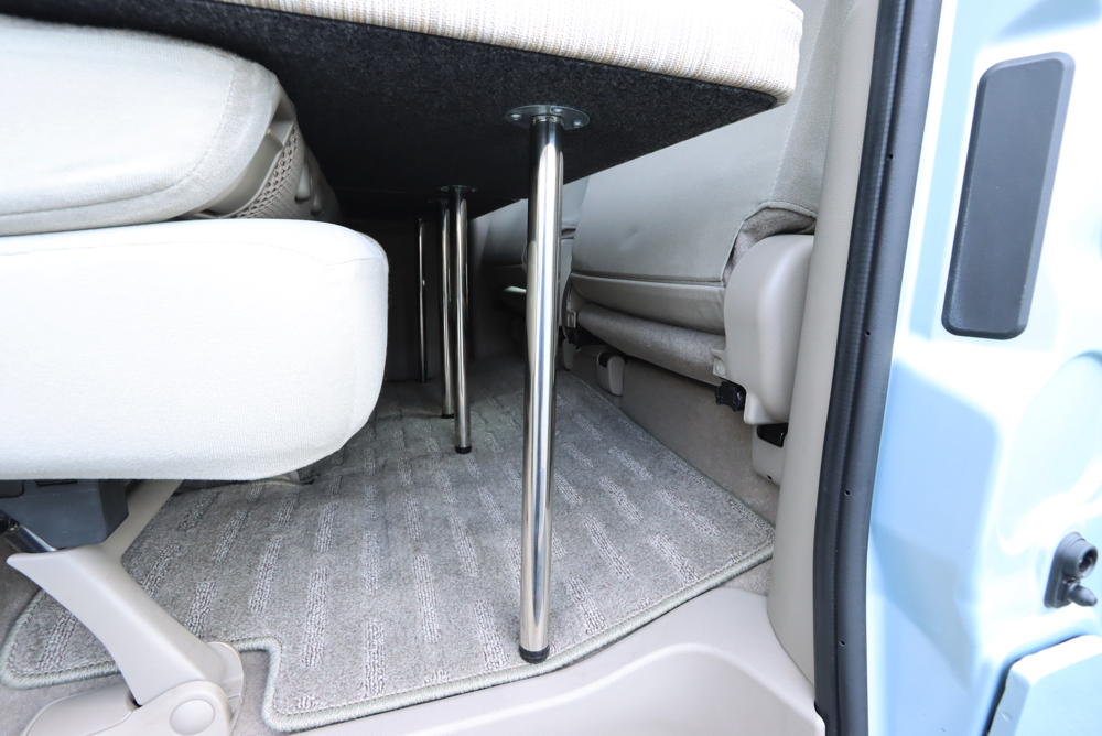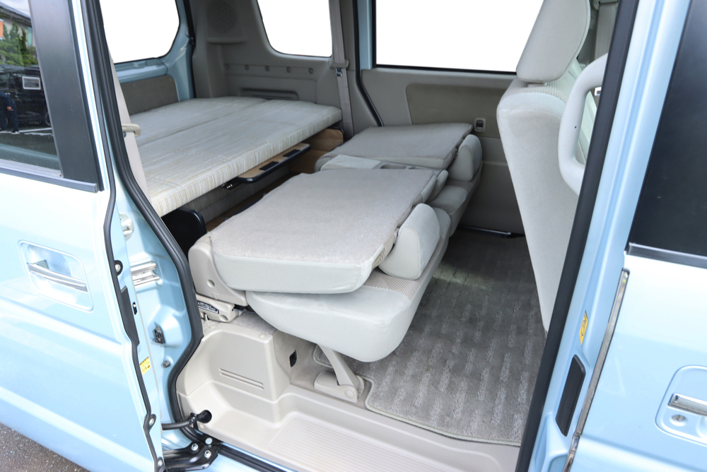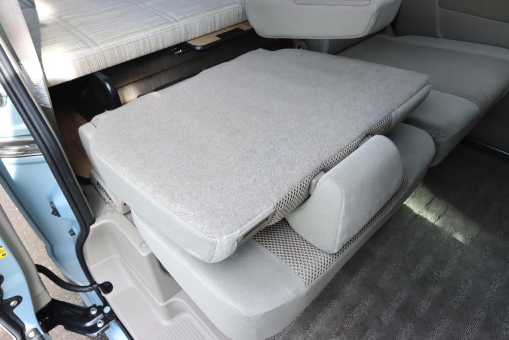 エブリィ内装に合わせて特注製作した新品ベッドが設置されているので、車中泊を楽しんでいただけます。